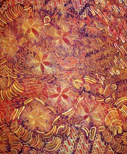 In Javanese philosophy there is an expression “ilmu itu kelakone kanti laku,” which means that through consciousness within the creative path, we achieve knowledge. This, in turn gives us an awareness of our behavior and it is this insight that arises from the interconnection of behavior and creativity. This process of contemplation and subsequent correction of our behavior goes on in an unending interaction until we reach an understanding at one phase of our path and go on to the next. From this evolving awareness there appears a sense of integrity and harmony that manifests itself in our life through our connection with Tribawana. (The traditional Indonesian batik motif semen, which means “to sprout or grow,” exemplifies this concept. The semen motif may have a white as well as a black background, which respectively portrays the seen and unseen world. Semen also symbolizes, Tribawana, the interconnection between humans, the universe and the world of light or the source of creativity.)